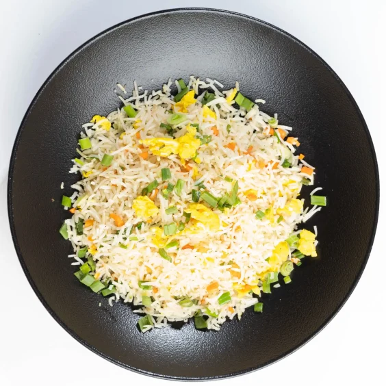A flavorful bowl of perfectly stir-fried rice tossed with soft, fluffy scrambled eggs, fresh vegetables, and aromatic seasonings. Light, delicious, and cooked to perfection, this classic dish delivers the perfect balance of simplicity and taste in every bite.